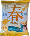 トリュフを日常食べしていない私には、トリュフいりと言われても、、なんかキノコっぽい香りということでいいのでしょうか。こちら、バター味の中にも、それだけではない香りがあります。これがトリュフなのでしょう。波型の厚切りカットにはバター味がよく浸みてます。なんだか上品に楽しめそうな一品です。331kcal。