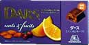 ドライオレンジピール、アーモンドクランチ、赤ワインパウダー使用。あけるとほんのりアルコール感。赤ワインパウダーを使用しているので納得です。一緒に買った「ダース ナッツ&フルーツ」と比べチョコレートの味わいが深いです。INとONの違いでしょうか。チョコレートがビター系なためでしょうか。考えながら食べてるとほぼ一気になくなりました。アルコール分0.4%。258kcal。