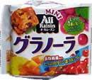 全てレーズンというわけではないけど、オールレーズン。食べてみると、いつものオールレーズンの食感に加え、穀物系の食感があります。グラノーラはだてじゃない。フルーツ系では、マンゴーとパインの味が強めに思えます。レーズン、マンゴー、クランベリー、パインいり。グラノーラの内容はオーツ麦、砂糖、ライスパフ、コーンパフ、ココナッツなどだそうです。146.8kcal。