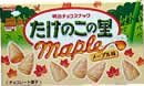 メープルというと、独特の甘みが印象的。たけのこになると、甘みの強さが特徴的なビスケット菓子として楽しめます。歯をいれるとほろっと崩れるような食感は、たけのこの里だからこそかもしれません。352kcal。