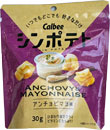 ぶ厚いポテチが多い昨今、薄さがうりのシンポテトにシン味登場です。アンチョビの味はほのかで、ひまわり油の方が目立っているかもとも思うほどです。塩味と比べるとしょっぱさ控えめなのが、逆にイモの味をストレートに感じられるのがいいかもです。166kcal。